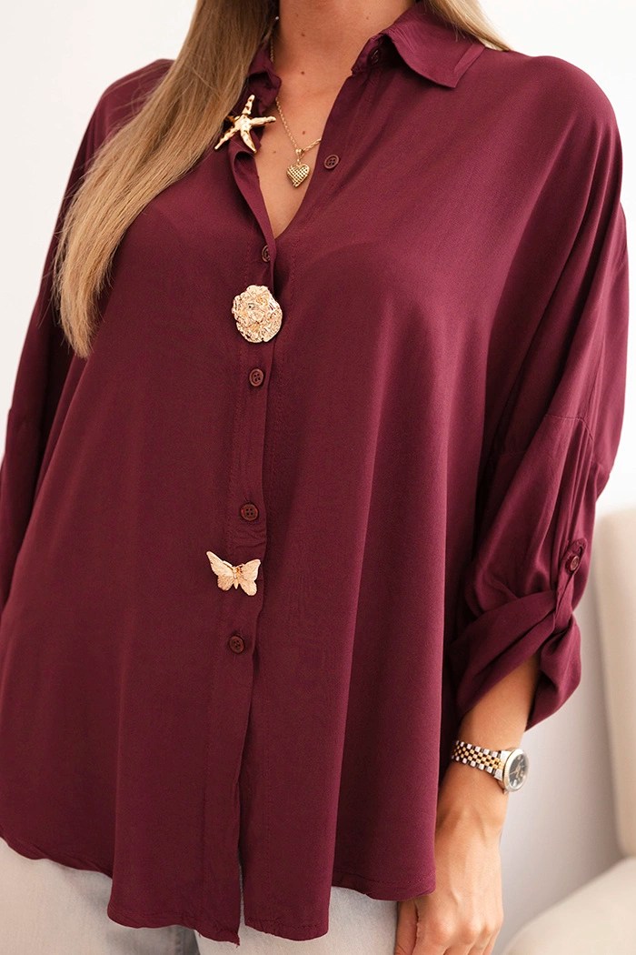 Elegantná dámska blúzka z viskózy je skvelý návrh na každú príležitosť – ako na bežný deň, tak aj do práce. Jemný, príjemný na dotyk materiál zabezpečuje komfort a slobodu pohybu. Klasický golier dodáva celku štýlový charakter, a dekoratívne gombíky – vrátane motívu hviezdy a motýľa – zdôrazňujú originálny štýl. Voľnejší strih zabezpečuje, že blúzka skvele sedí na…